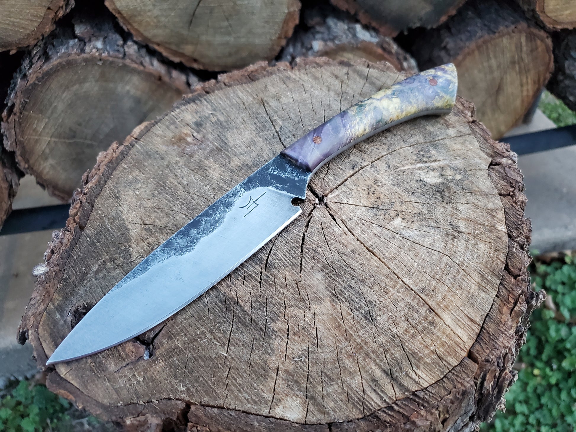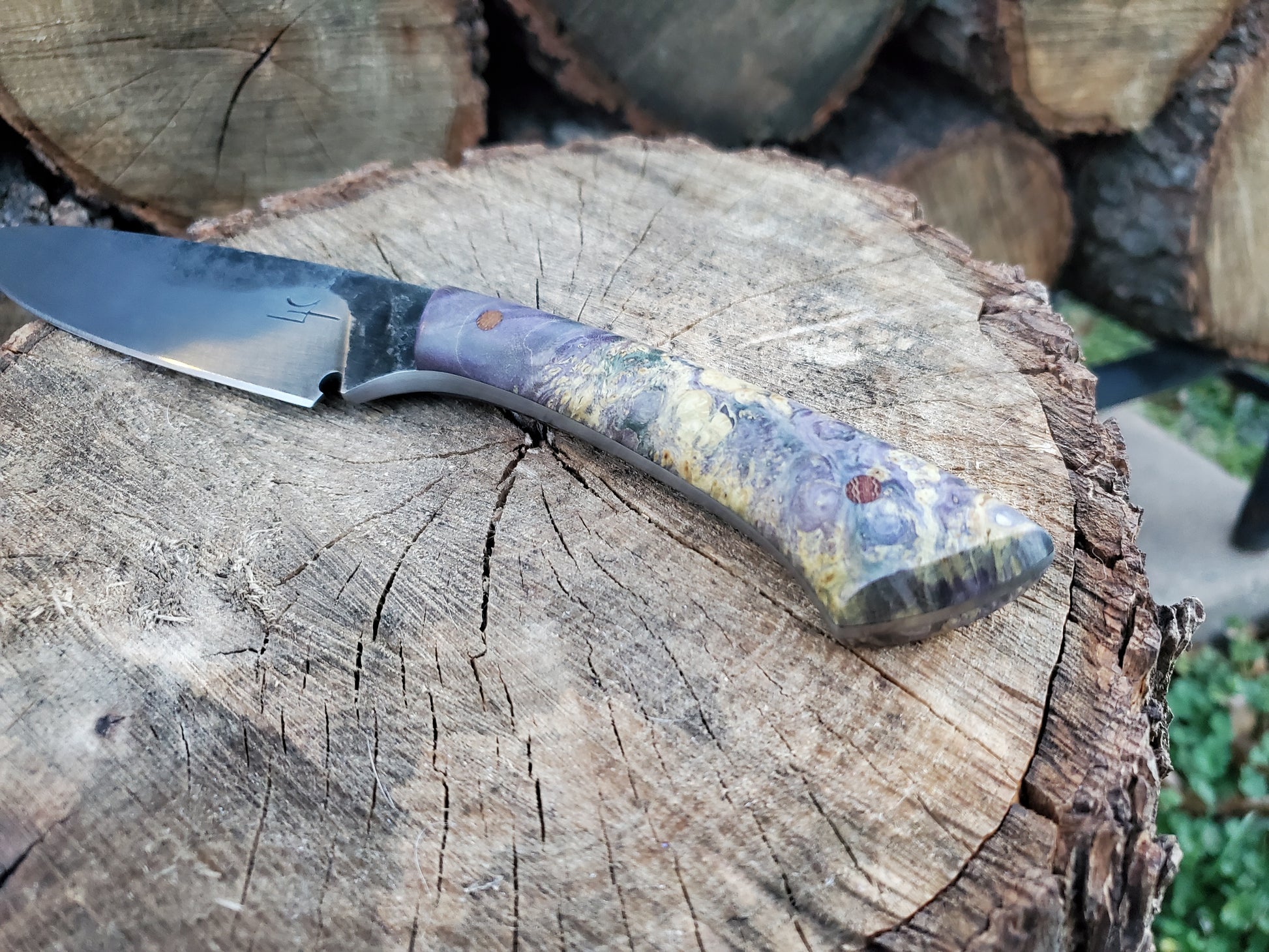 Forged 80CRV2 Camp Knife with Beautiful Stabilized Handle Scales!