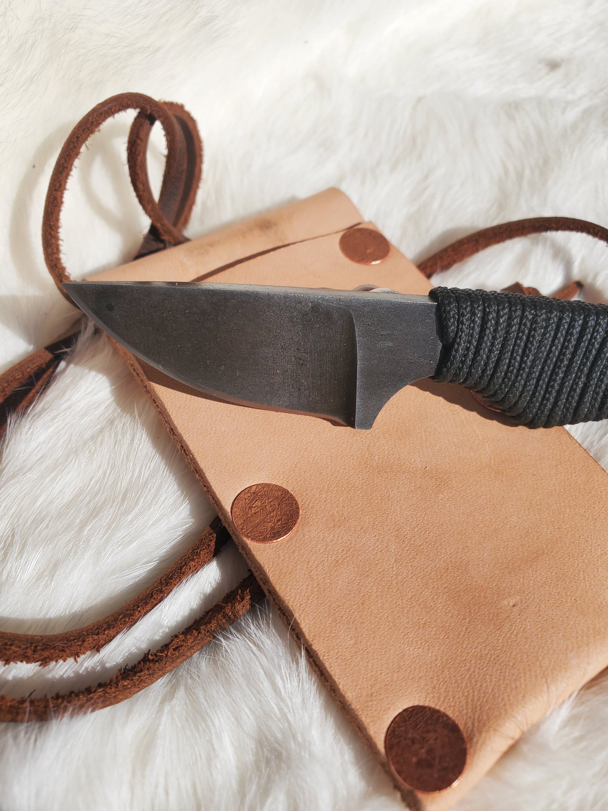 Reliable Edc made of 1080 steel that fits comfortably in its sheath around your neck. Perfect little 3 finger Edc or makes a great first knife.
